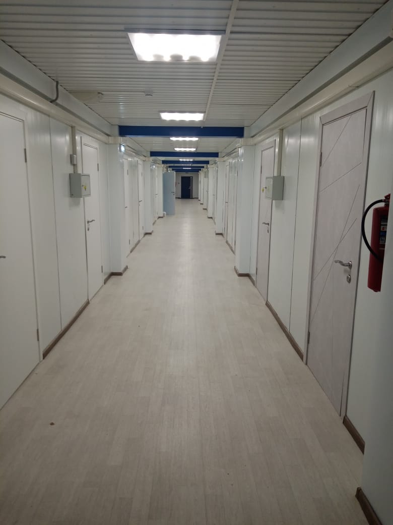 Возводить общежитие начали в сентябре 2021 года. Здание построили на базе сборных панельных блочно-модульных конструкций, которые монтируются на ленточный фундамент, а в качестве ограждающих и утепляющих конструкций применили сэндвич-панели толщиной 200 мм, срок эксплуатации которых составляет не менее 25 лет.