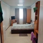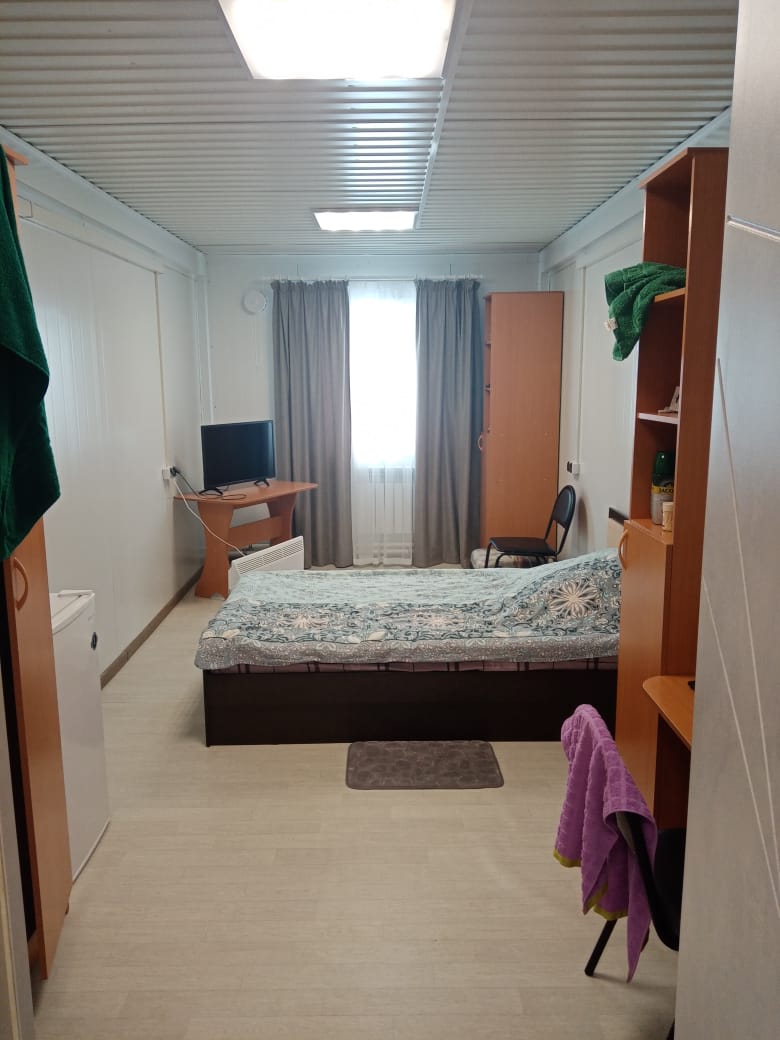 Комнаты оборудованы необходимой мебелью: кроватями, шкафами, столами, тумбами и телевизорами. В обеденной зоне установлен удобный кухонный гарнитур, современная электроплита и холодильник. Кроме того, для удобства проживающих на каждом этаже обустроены помещения для стирки и сушки личных вещей.